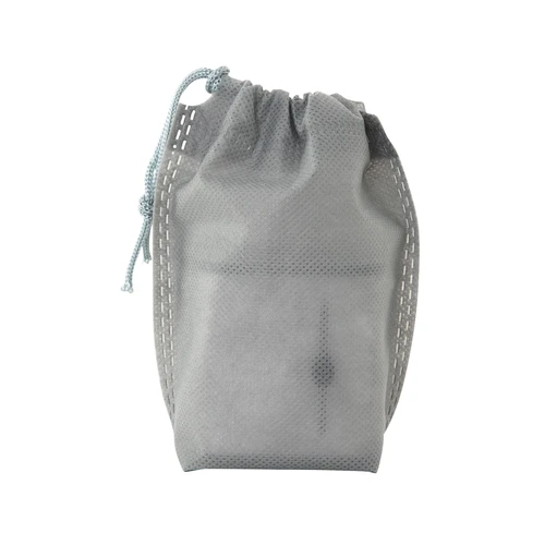Presentación: Bolsa non-woven en color gris con cordón y en caja de regalo kraft.