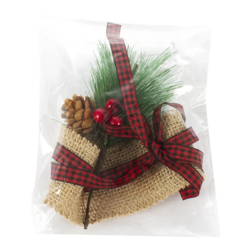 Adorno decorativo de yute, cinta y pino, para vela B52.