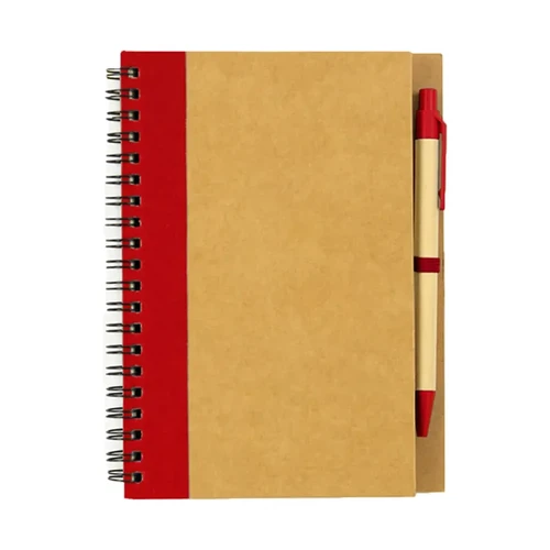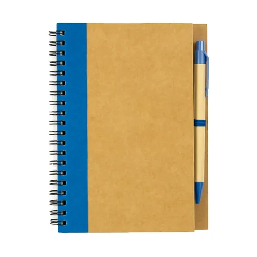 Anotador con hojas rayadas y bolígrafo de tinta azul. Cuenta con 60 hojas rayadas, espiral resistente, peso liviano de 114g. Es ideal para tomar notas en oficina, estudio y uso diario, también para merchandising y kits corporativos.