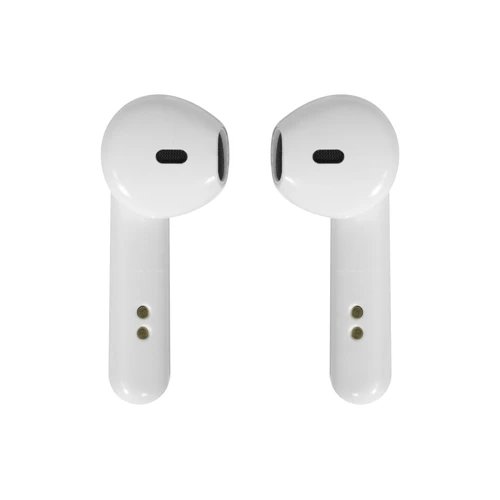 6,8 x 4,4 x 2 cm. (medida de la caja) 4 x 0,8 cm (auriculares). Plástico ABS. Auriculares bluetooth, se conectan al celular de forma inalámbrica. Los auriculares cuentan con función touch en cada costado de los audifonos (izquierdo y derecho) para funciones de avance, retroceso, reproducción y pausar musica. Así como también para las funciones de tomar y finalizar una llamada. Estuche que permite cargar la batería de los auriculares. Indicador de batería. Duración de la carga en inactividad: 200 horas. Tiempo de reproduccion autónomo 3 horas aprox. Batería de litio. Cable de carga micro USB V8. Presentación en caja de regalo.
