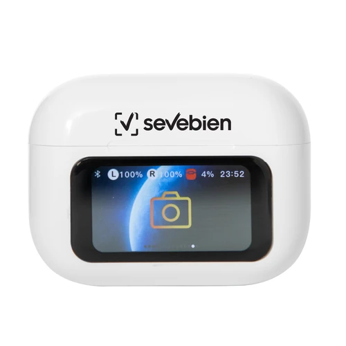 Mejor experiencia y más control desde un mismo lugar.Auriculares bluetooth TWS. Estuche de carga con pantalla táctil multifunción. 14 modos de selección que incluyen disparador para selfies, cronómetro, localizador de auriculares, luz, ecualizador, volumen y cambio de canciones. Encendido automático. 2 micrófonos. Canal doble de sonido. Incluye manual y cable de carga USB-C de 20 cm. color blanco.Medidas: 6 x 4,5 x 2,5cm. (estuche)