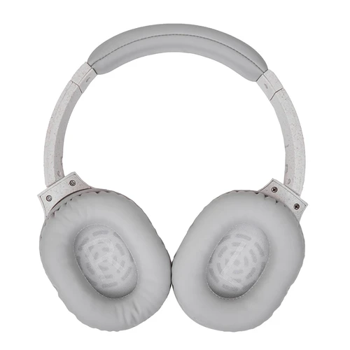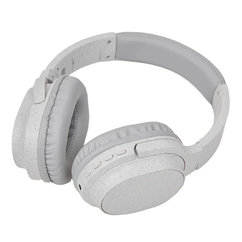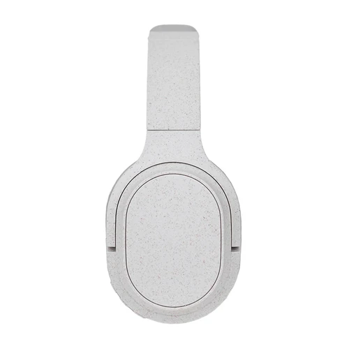 Auriculares inalámbricos estilo diadema, con micrófono incorporado. Realizado en ABS y Wheat Straw, pasta de tallo de trigo, un material sustentable que reduce el consumo de plásticos vírgenes. Cuenta con cobertura bluetooth en una distancia de 10 metros y conector para cable jack de 3.5mm, y ranura para tarjetas de memoria. Incluye cable micro USB de carga. Incluye botones de comando para encender, apagar, retroceder y avanzar. Su capacidad de carga es de 450mAh. Potencia: 15mWx2. Sensibilidad: 85dB. Impedancia: 32 Ω. Bluetooth: 5.1.