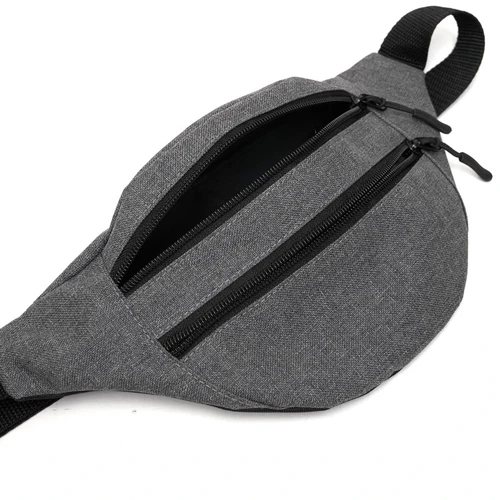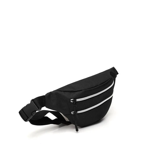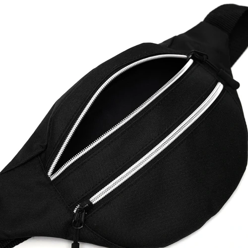 Banano de 600D polyester, duradero y resistente, con dos bolsillos con cierre para mayor seguridad. Cuenta con una correa negra ajustable con broche para un ajuste cómodo.