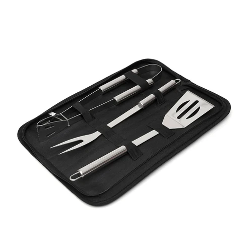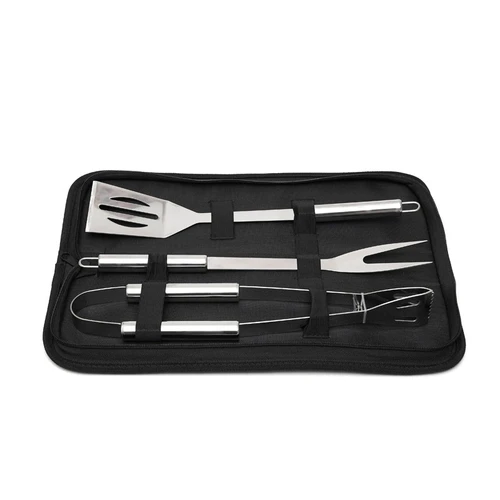Set de utensilios para Barbacoa de acero inoxidable. Incluye tenedor, pinza y espátula. Presentado en funda con cierre.: 40 x 12 x 5,4 cm.