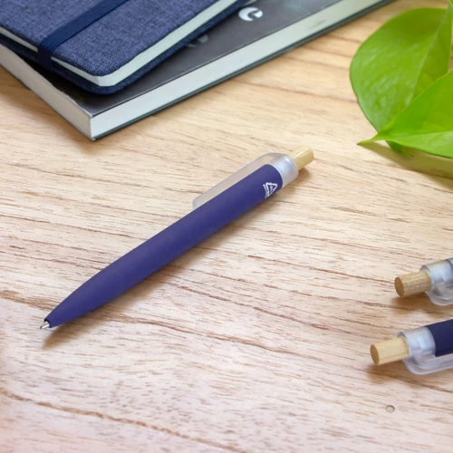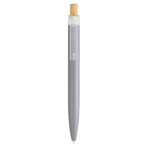 Fusiona lo moderno, elegante y ecológico.Bolígrafo retráctil. Cuerpo de aluminio en diferentes colores, acabado mate engomado, muy suave al tacto. Botón pulsador de bambú. Clip plástico transparente con terminación frosty. Medidas: 1,6 x 13,4 cm.