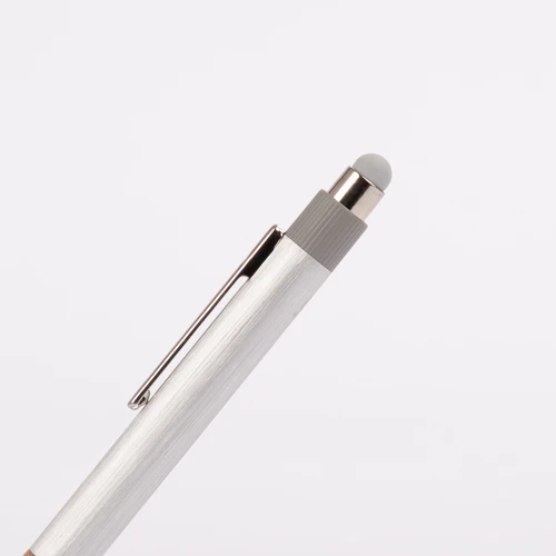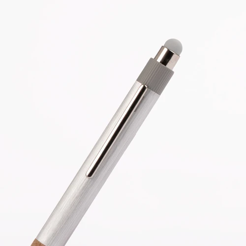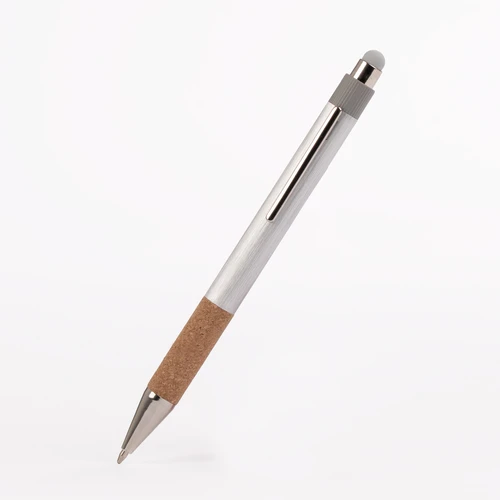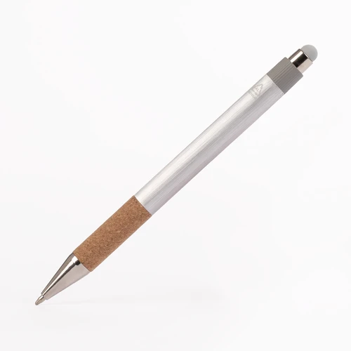 ZERMATT combina diseño moderno con una historia de impacto positivo. Fabricado con aluminio reciclado y grip de corcho natural de origen responsable, este bolígrafo refleja una opción consciente para quienes valoran el diseño y el planeta. Mecanismo de pulsador, detalles cromados y punta touch gris completan un artículo personalizable ideal para marcas que escriben el futuro con coherencia y estilo.
