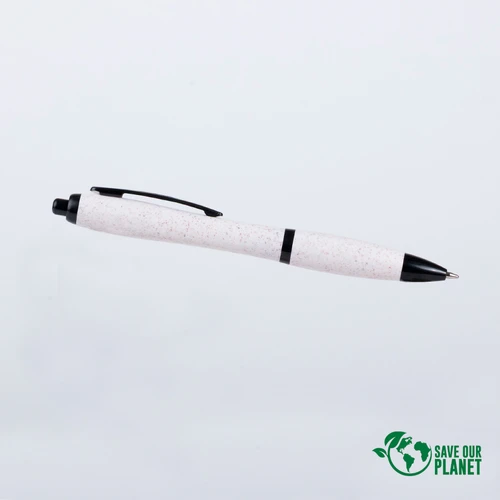 Bolígrafo ecológico modelo "ELEMENT 2", fabricado con ABS y Fibra de Trigo (Wheat Straw), un material sustentable que reduce el uso de plásticos. Escritura azul.