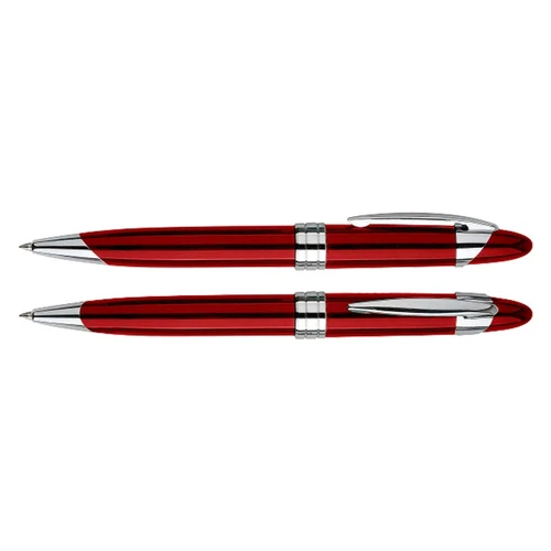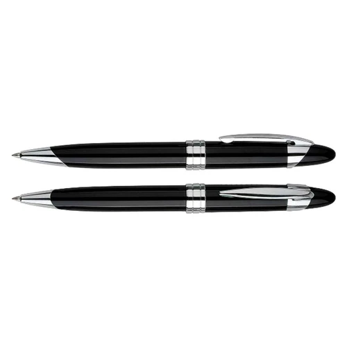 Bolígrafo metálico modelo "Black Pearl", con terminales cromados plata. Escritura azul.