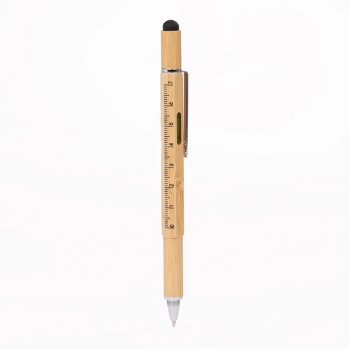 MINDO combina versatilidad y conciencia ecológica en una sola herramienta. Hecho de bambú proveniente de fuentes gestionadas responsablemente, este bolígrafo multifunción incluye regla, nivel de burbuja y destornillador de doble cabeza en un diseño compacto e inteligente. Con detalles cromados y punta touch negra, MINDO es ideal para personalizar y regalar a quienes valoran soluciones prácticas y sostenibles.