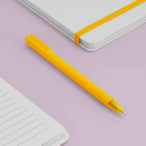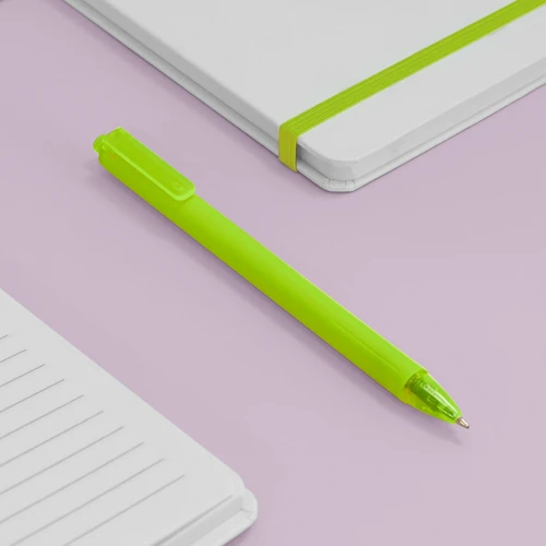 Dale vida a tus palabras.Bolígrafo retráctil. Cuerpo de diferentes colores acabado mate. Pulsador, clip y puntera translucidos del mismo color del cuerpo. Medidas: 1 x 14,3 cm.