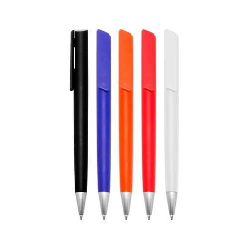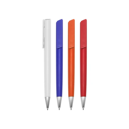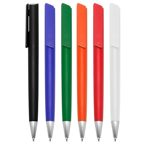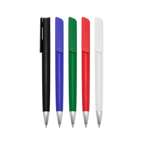 Plástico. Cuerpo color. Clip pulsador y puntera color plata. Tinta negra