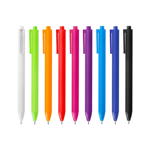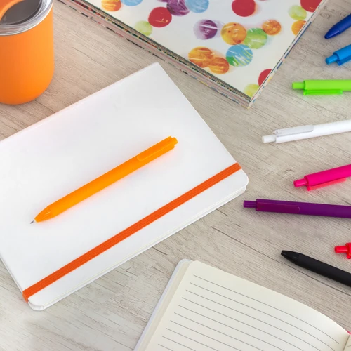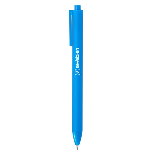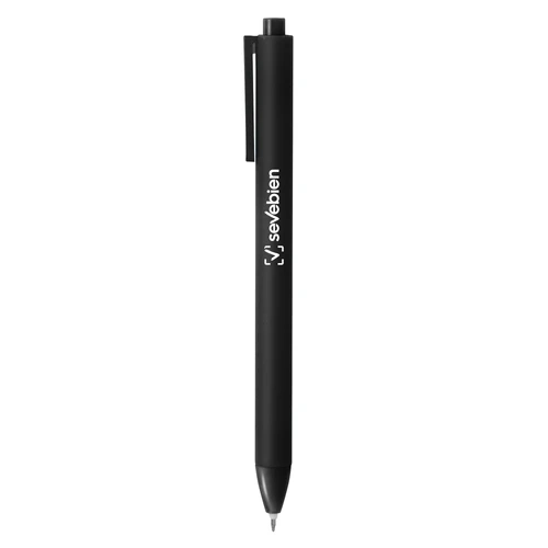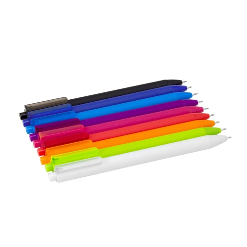 Escribe con estiloBolígrafo retráctil con tinta gel. Cuerpo de diferentes colores con acabado mate suave al tacto. Pulsador y puntera del mismo color del cuerpo acabado brillante. Clip translúcido del mismo color del cuerpo.