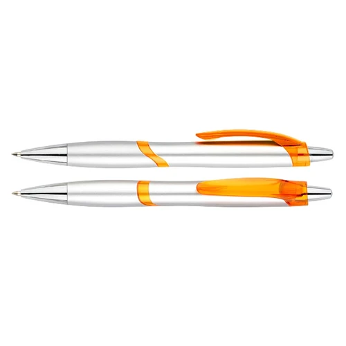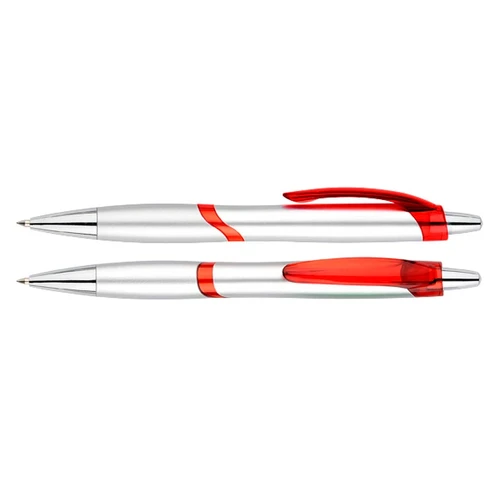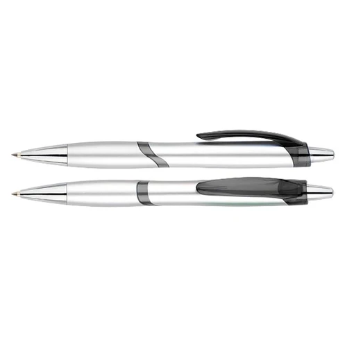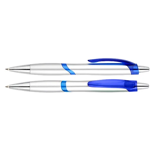 Bolígrafo plástico plateado "Júpiter". Escritura Azul.
