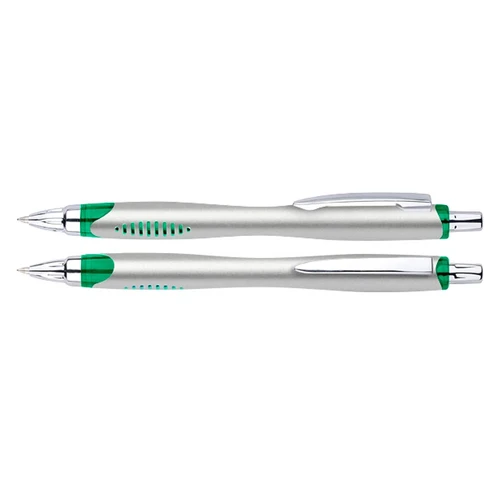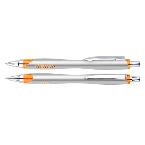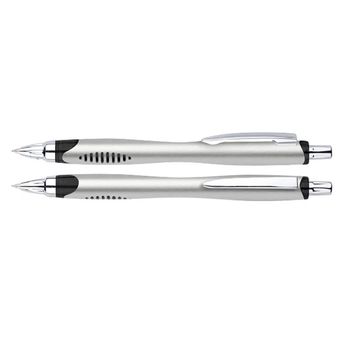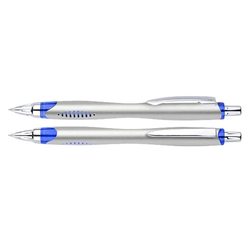 Bolígrafo plástico plateado "Motion". Escritura Azul.