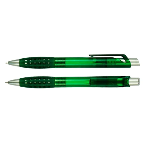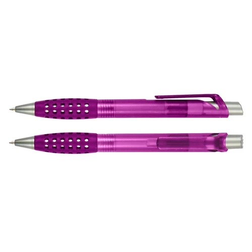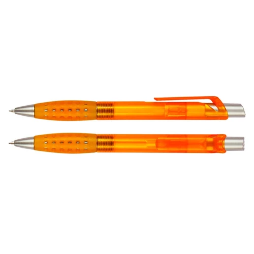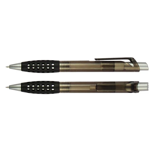 Bolígrafo plástico modelo "Punch" con grip de goma con orificios. Escritura azul.