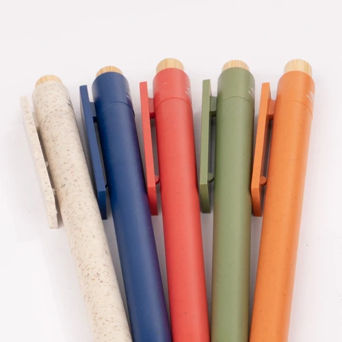 BOMBAY es un bolígrafo que combina lo esencial con lo responsable. Su cuerpo y clip están elaborados con fibra de trigo, un material natural que reduce el uso de plástico convencional, mientras que su pulsador de bambú añade un toque orgánico y moderno. Disponible en una paleta de colores vibrantes –blanco, azul, rojo, verde, naranja y café– y diseñado para personalización, BOMBAY es ideal para campañas que buscan comunicar creatividad y sostenibilidad en un solo trazo