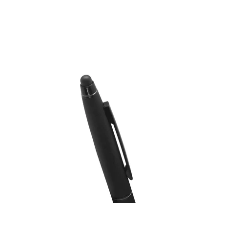 Metálico. Bolígrafo touch con apertura giratoria. Destape acero en la parte superior. Cuerpo color negro mate. Puntera y clip color negro brilloso. Tinta azul. Presentación en caja de regalo.