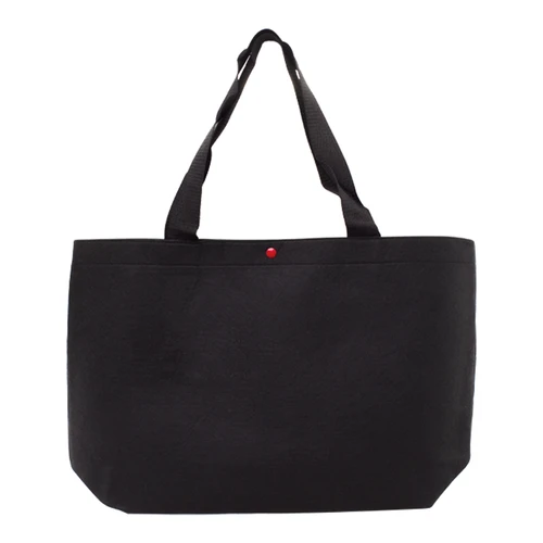 Bolsa de compras de Fieltro modelo "British". Tela Fieltro Poliéster 300g/m2. Capacidad 20 litros, tamaño 51 x 33 x 12 cm. Incluye broche rojo y manillas de poliéster negro.