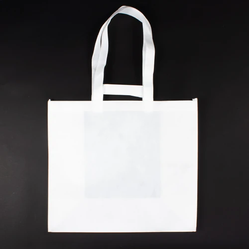 Bolsa reutilizable de tela PET no tejida de 90g/m2, modelo "Supermarket". Con doble par de asas reforzadas, cortas (22cm c/u) y largas (66cm c/u). Ideal para Sublimación.