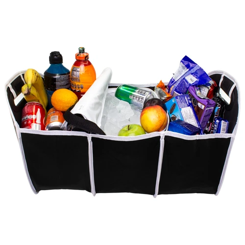 ¿Quieres tener todo organizado para tus vacaciones? Este bolso plegable es ideal para llevar gran cantidad de objetos y alimentos en tu vehículo, e incluye un práctico cooler para llevar los alimentos frescos!! Una vez vacío, se pliega y queda convertido en un práctico rectángulo plano de 32.5 x 32 cm