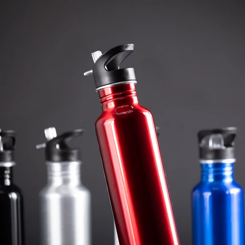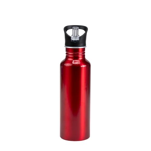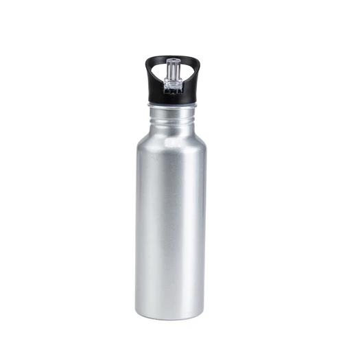 Sport Bottle botella metálica de Aluminio modelo "BUZZ", con tapa rosca de plástico PP, dosificador retraíble con boquilla translúcida y anillo de silicona, anti-derrame. Producto BPA FREE, para el contacto con líquidos y alimentos. Capacidad 750ml. Presentación en bolsa PP + caja de regalo de cartón lacado color plata. IMPORTANTE: esta botella NO es térmica, apta sólo para líquidos fríos.
