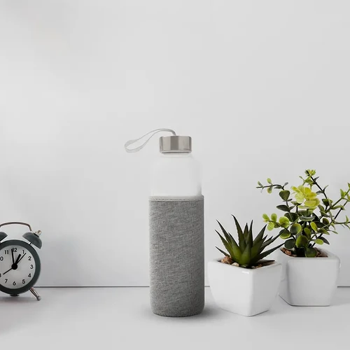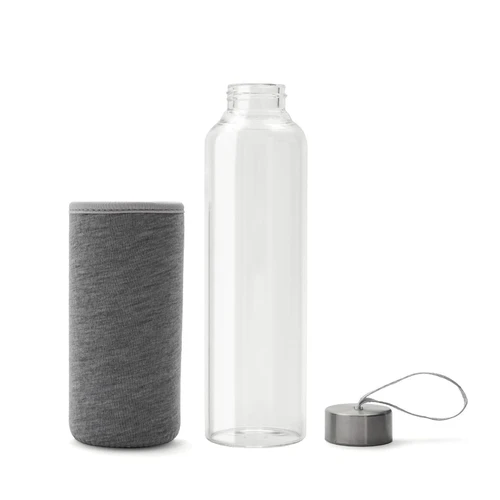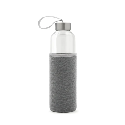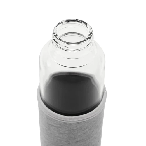 Botella fabricada en vidrio borosilicato, un material resistente y duradero. Cuenta con una funda protectora de neopreno brindando un diseño práctico que protege contra golpes. Su tapa a rosca incluye una cinta integrada, ideal para un transporte cómodo y seguro. Con una capacidad de 550 ml, es perfecta para mantenerte hidratado durante tus actividades al aire libre o en la rutina diaria.
