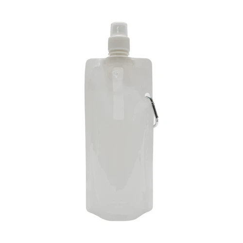 Botella de Plástico PET, con Mosquetón para colgar. Producto libre de BPA. Liviana y flexible, ideal para llevar a cualquier lugar, ya que vacía se puede plegar para transportar incluso dentro del bolsillo.