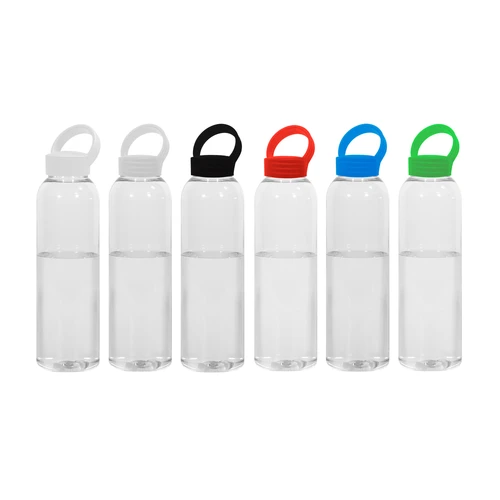 Botella de plástico transparente con tapa a rosca plástica.