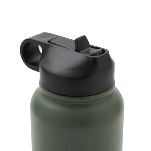 Botella isotérmica de 1000 ml, con doble pared de acero inoxidable 18/8, pintura en polvo y base de silicona antideslizante, mantiene tus bebidas frías durante 12 horas y calientes durante 8 horas. Cuenta con dos tapas negras a rosca, para que utilices la que te resulte más cómoda: la primera, con boquilla y anillo para facilitar el agarre, y la segunda con manija para transportarla. Incluye 2 sorbetes y cepillo limpiador.
