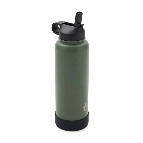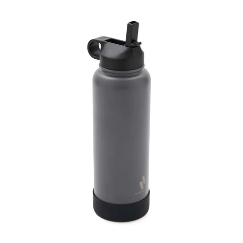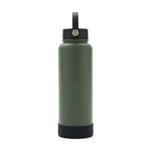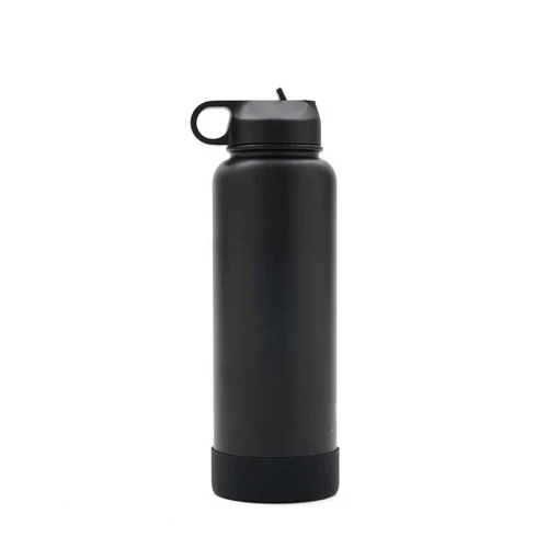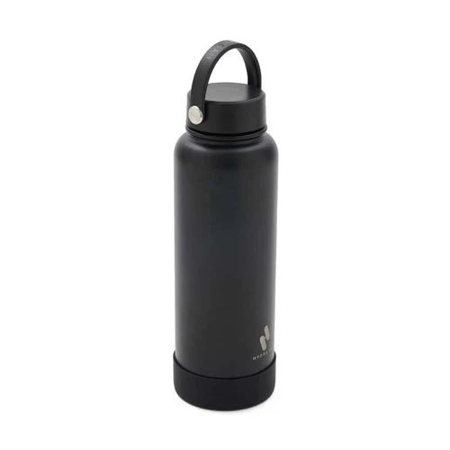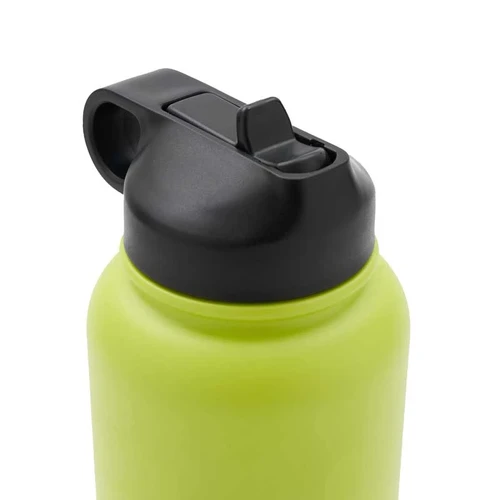 Botella isotérmica de 1200 ml, con doble pared de acero inoxidable 18/8, pintura en polvo y base de silicona antideslizante, mantiene tus bebidas frías durante 12 horas y calientes durante 8 horas. Cuenta con dos tapas negras a rosca, para que utilices la que te resulte más cómoda: la primera, con boquilla y anillo para facilitar el agarre, y la segunda con manija para transportarla. Incluye 2 sorbetes y cepillo limpiador. Viene en 12 colores diferentes. Ideal para tus actividades deportivas y al aire libre. Con impacto positivo en el medio ambiente, esta botella reutilizable te ayuda a reducir el consumo de plástico de un solo uso. Dimensiones: 29 x 9 cm (Altura x Diámetro). Los productos tienen certificación de calidad bajo pedido.