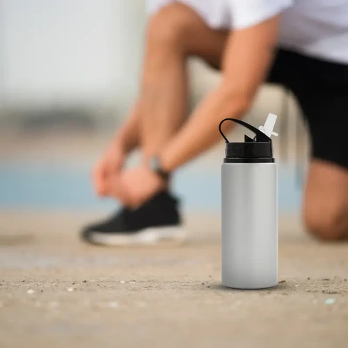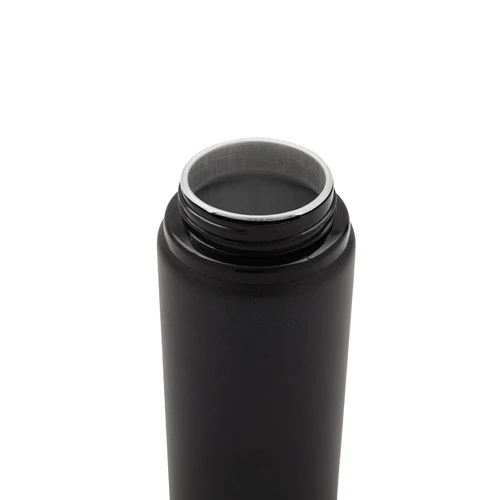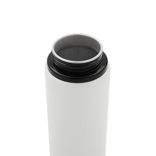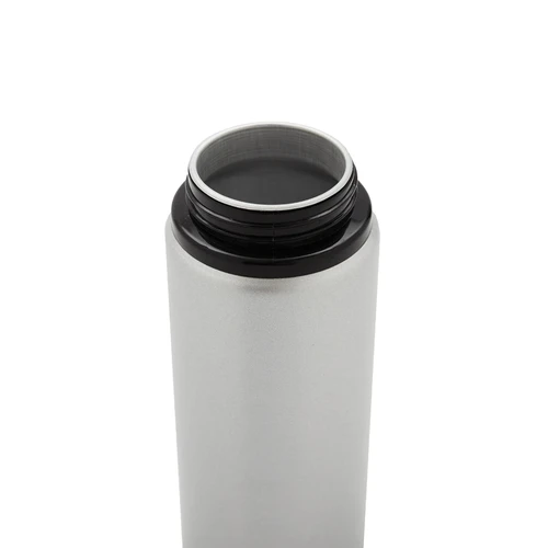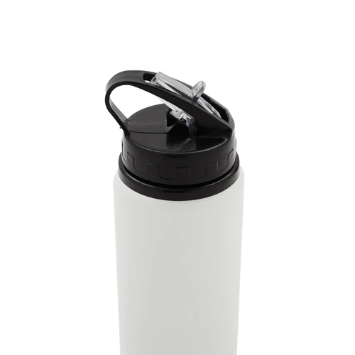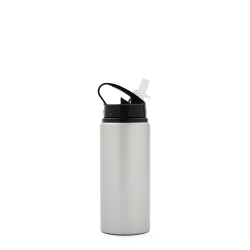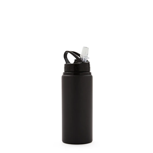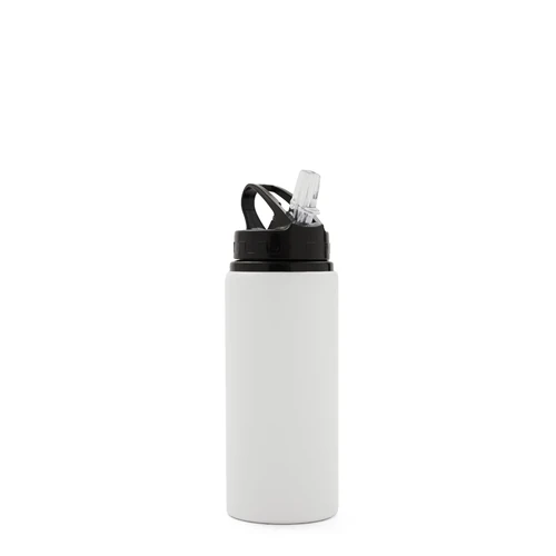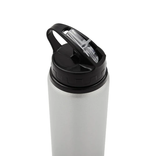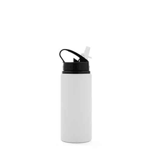 Botella de aluminio con capacidad de 600 ml. Tapa a rosca con boquilla y con agarre, para facilitar su transporte. El producto viene en una bolsa de PLA 100% compostable. Ideal para deporte o uso diario. Dimensiones: 21 x 7 cm.