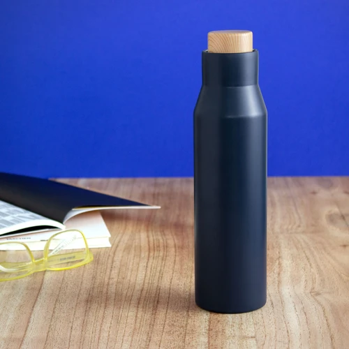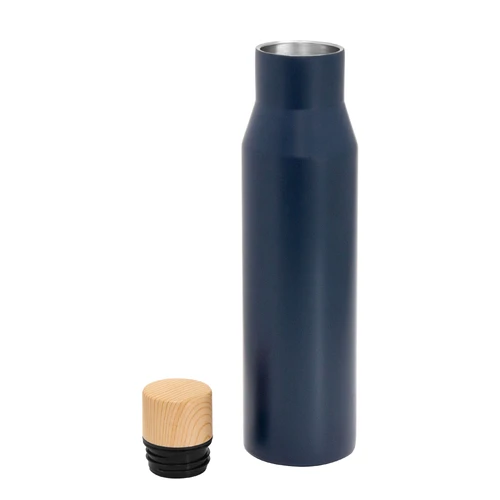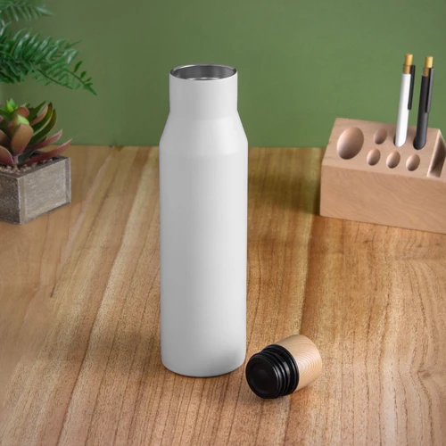 Ideal para llevar a tus actividades diarias.Botella doble pared, sellada al vacío. Interior de acero 304 y exterior de acero 201. Pintura acabado mate. Tapa a rosca con anillo de silicona, interior de acero 201 y exterior en polipropileno imitación bambú. Mantiene hasta 6 hs la temperatura de las bebidas calientes y hasta 10 hs la de las bebidas frías.Medidas: Ø 6,8 cm x 26 cm.