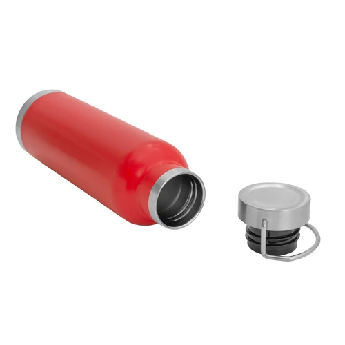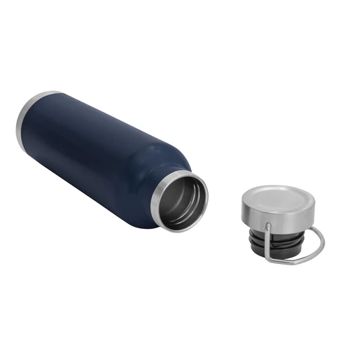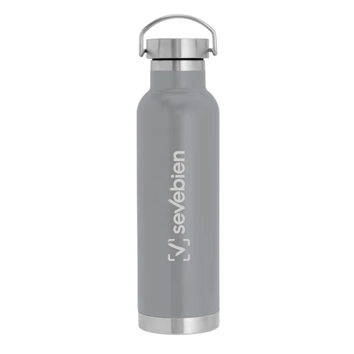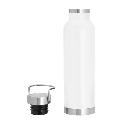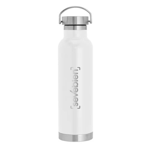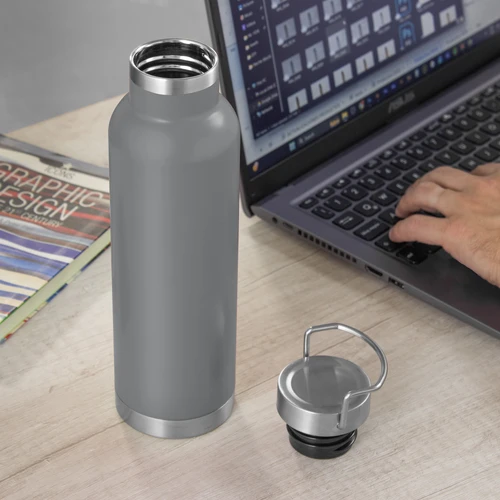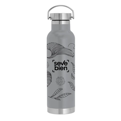 Ø 7,3 x 26 cm. Capacidad 650 ml. Acero inoxidable. Botella doble pared, sellada al vacío. Interior en acero 304 y exterior en acero 201. Tapa de acero a rosca con manija rebatible metálica . La medida de este termo es tan practica que con el tendras el liquido necesario para estar hidratado en el momento del día que elijas. Mantiene hasta 12 hs la temperatura de las bebidas calientes y hasta 24 hs la de las bebidas frías. Presentación en caja de regalo.