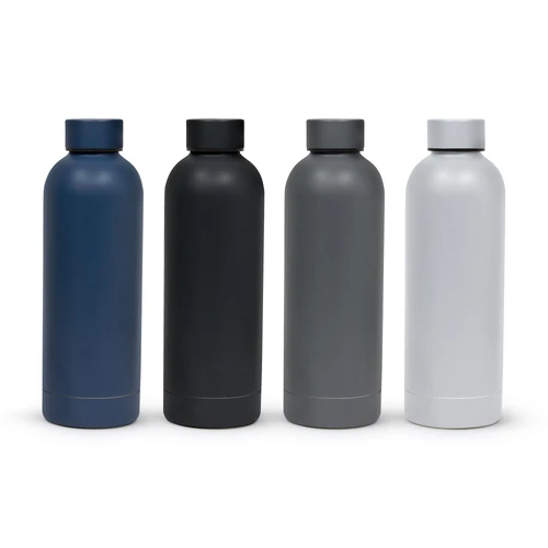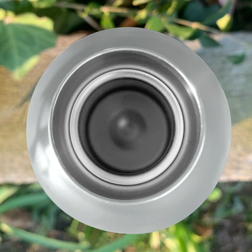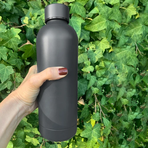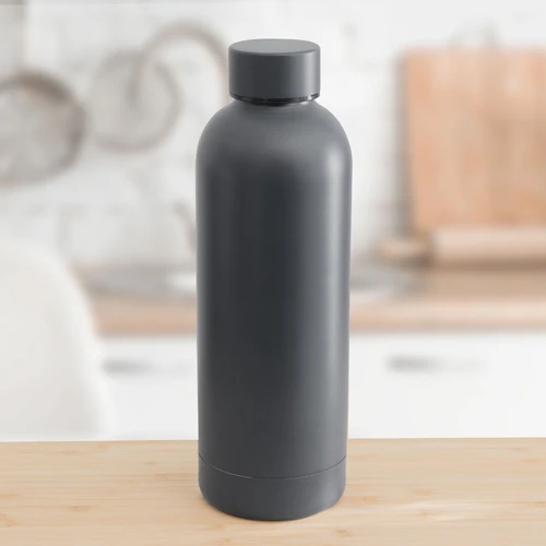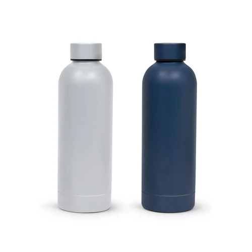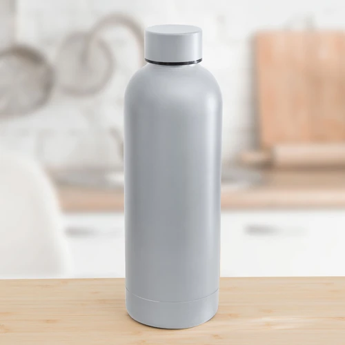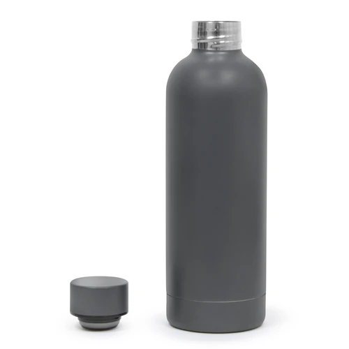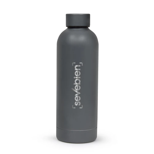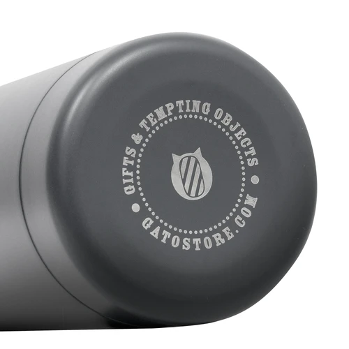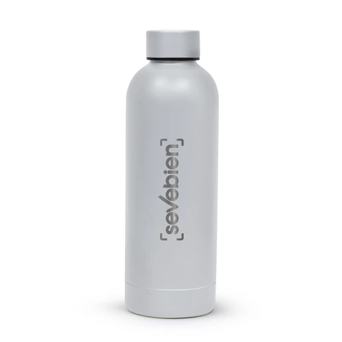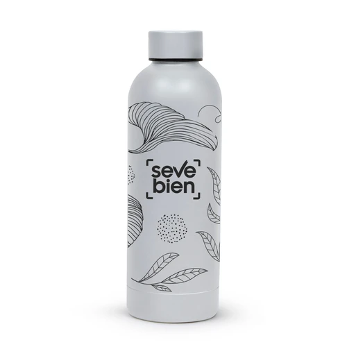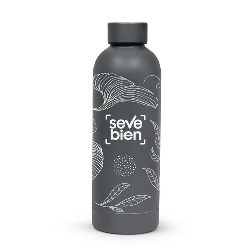 Ø 7.4 x 22 cm. Capacidad 500 ml. Acero inoxidable. Botella doble pared, sellada al vacío. Interior en acero 304 y exterior en acero 201. Mantiene hasta 12 hs la temperatura de las bebidas calientes y hasta 24 hs la de las bebidas frías. Presentación en caja de regalo.