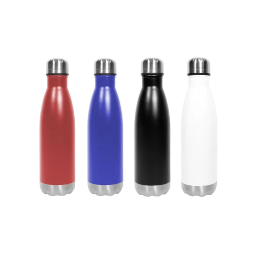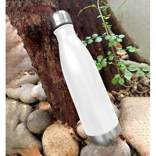 Ø 6,5 x 26,5 cm. Capacidad 500 ml. Acero inoxidable. Botella doble pared, sellada al vacío. Interior de acero 304 y exterior de acero 201. Tapa a rosca y base metálica color plata. Mantiene hasta 8 hs la temperatura de las bebidas calientes y hasta 12 hs la de las bebidas frías. Presentación en caja de regalo.