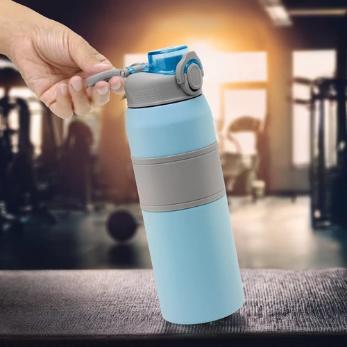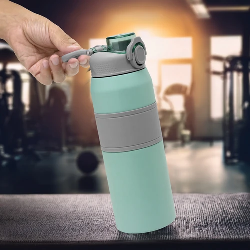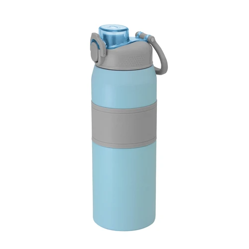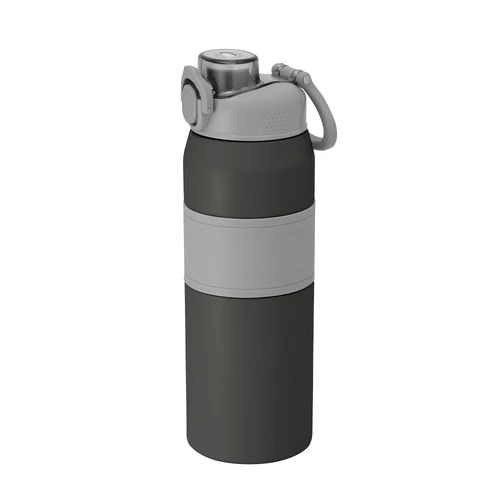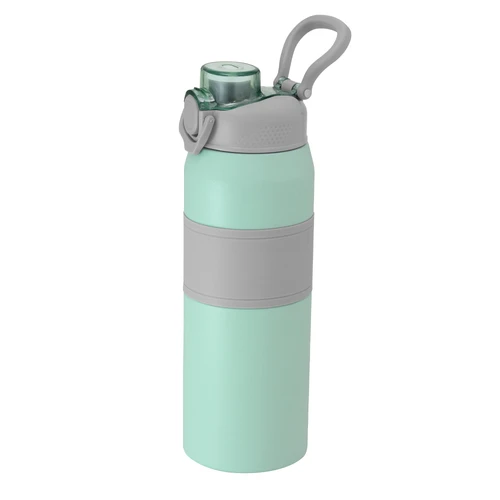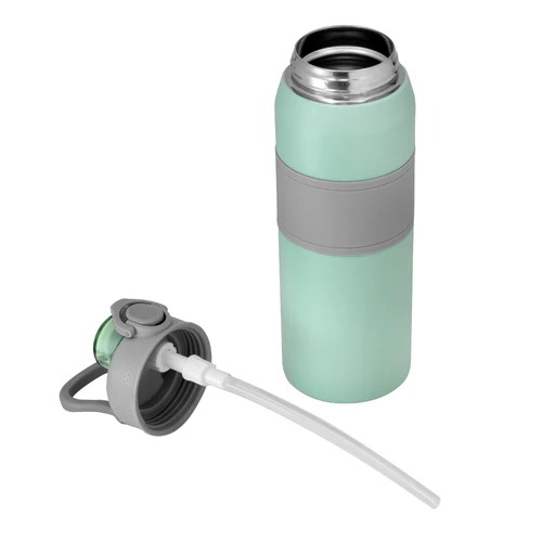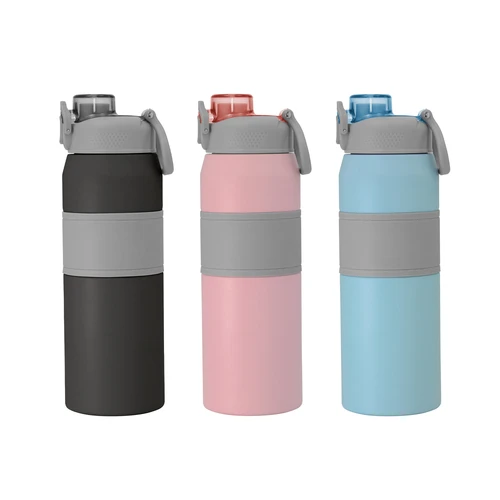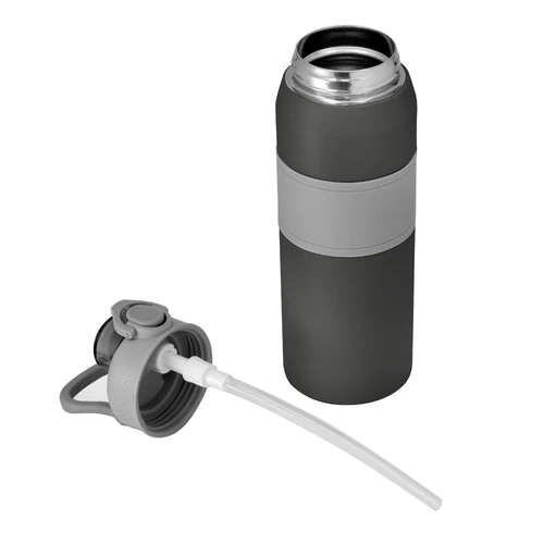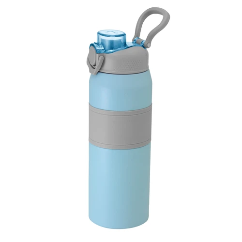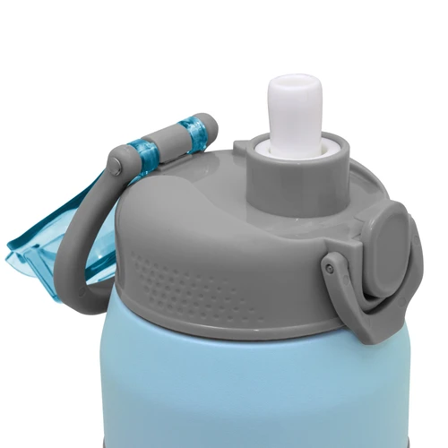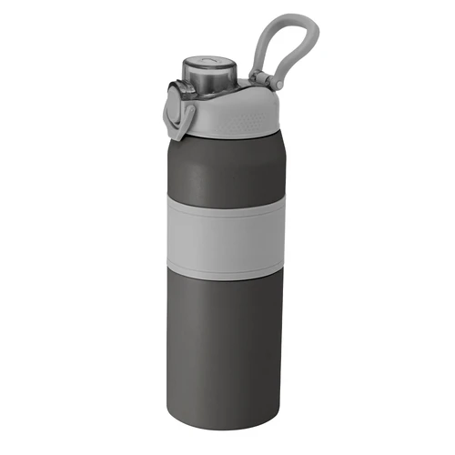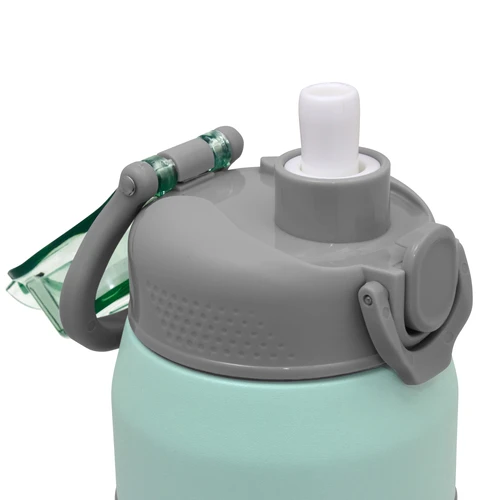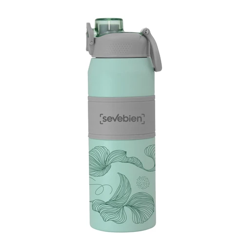 Hidratación a otro nivel.Botella deportiva con doble pared, sellada al vacío. Interior de acero 304 y exterior de acero 201. Pintura powder coat (pintura más duradera y resistente a la corrosión y el paso del tiempo). Tapa plástica a rosca en color gris con anillo de silicona y manija plástica para su agarre, combinada con tapa rebatible en colores translucidos a juego con el color de la botella. Boquilla con sorbete incluido. Grip de silicona color gris para mejor agarre. Mantiene hasta 8 hs la temperatura de las bebidas calientes y hasta 12 hs la de las bebidas frías.. Medidas: Ø 8 cm x 25 cm.