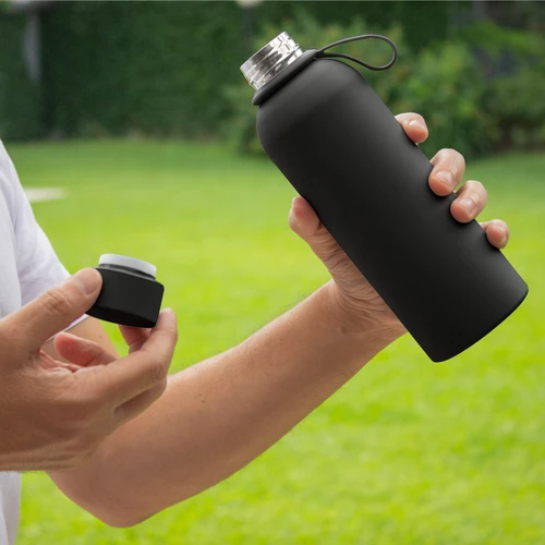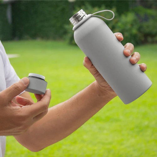 Tus bebidas a la temperatura perfecta por horas.Botella doble pared, sellada al vacío. Interior de acero 304 y exterior de acero 201. Tapa a rosca de acero 201, interior plástico con anillo de silicona. Asa de silicona para un transporte fácil. Pintura con terminación suave al tacto. Mantiene hasta 6 hs la temperatura de las bebidas calientes y hasta 10 hs la de las bebidas frías. Medidas: Ø 7,2 x 21,5 cm.