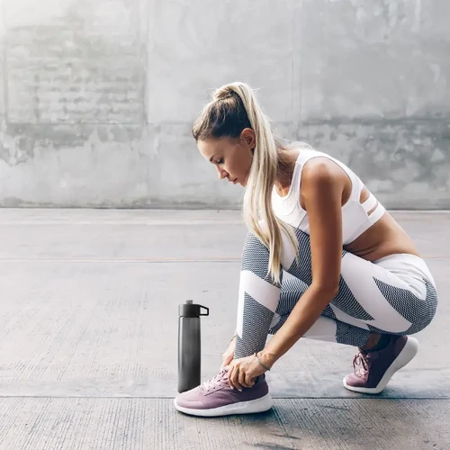 Botella de PP y PC, con boquilla vertedora ideal para ir al deporte. Cuenta con un agarre en la tapa, para facilitar su transporte.