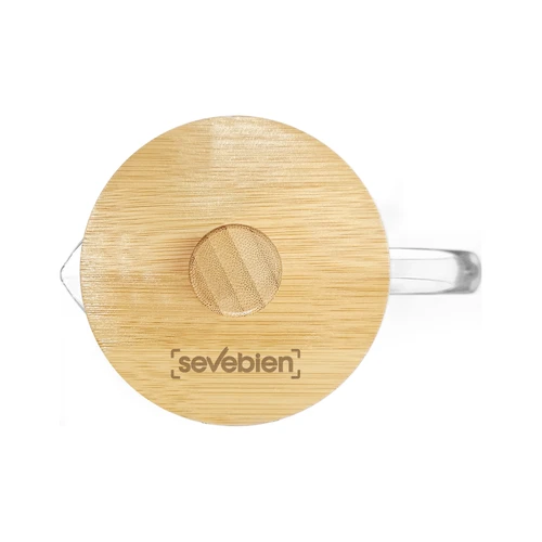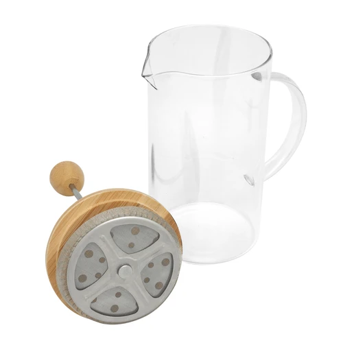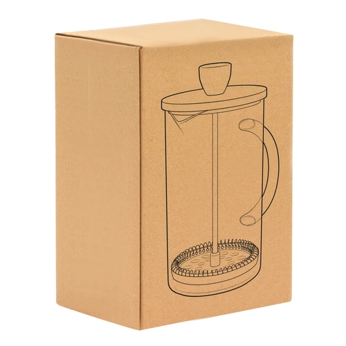 Ø 8 x 18 cm. Capacidad 600ml. Vidrio de Borosilicato + Tapa de bambú. Cafetera Prensa Francesa con filtro de aluminio. Presentación en caja de regalo Kraft.