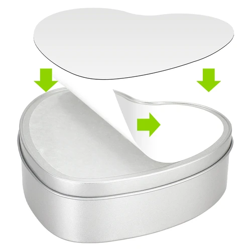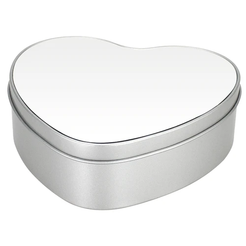 Caja Metálica con forma de Corazón, con tapa y cubierta blanca para Sublimación. Presentación en bolsa de Polipropileno + caja de cartón forrado color natural. Ideal para usar como joyero, especiero o guarda-accesorios. Un regalo práctico y delicado para cualquier mujer.
