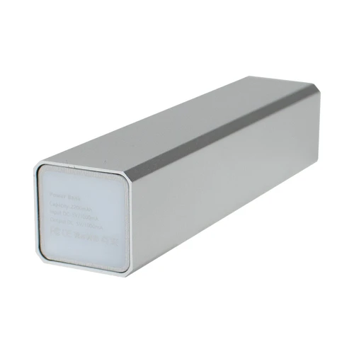 Cargador Power Bank USB portátil metálico rectangular. Capacidad 2200mAh. Entrada 5V/1A, salida 5V/1A. Incluye cable USB/Micro USB. Batería recargable incorporada. Presentación en caja de regalo de cartón negro .