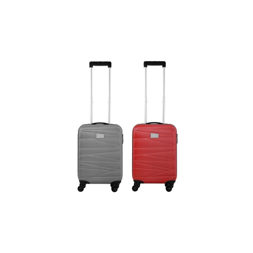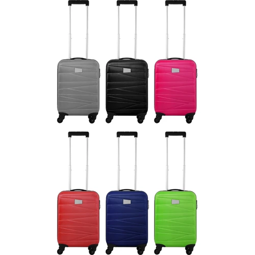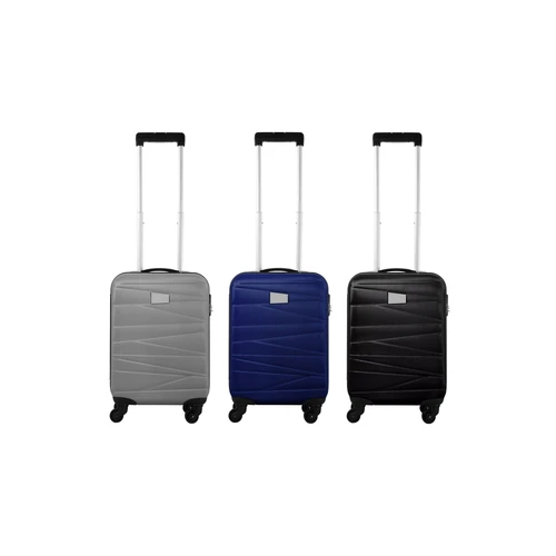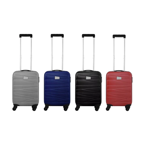 34 x 54 x 20 cm. (total). Capacidad 31 litros. ABS. Valija / Maleta pequeña. 4 ruedas con giro 360°. Manija de transporte reforzada. Mango extensible hasta 54 cm. 2 posiciones. Interior: 2 compartimentos principales con cierre y elásticos ajustables. Placa metálica desmontable para grabado (medida: 6 x 4 cm.) Candado incluido con combinación.