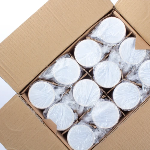 Cartón con 36 tazones cerámicos extra-blancos para sublimación. Presentación unitaria en bolsa plástica transparente, con separadores de cartón dentro de la caja (no incluye caja individual).