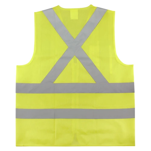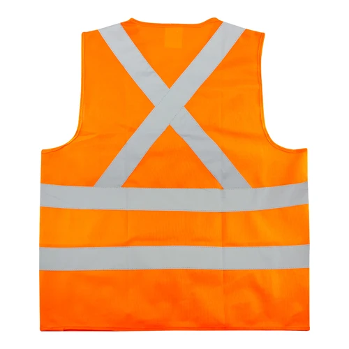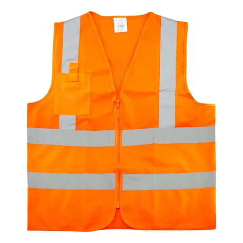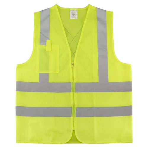 Chaleco Reflectante de Seguridad modelo "Traffic", 100% tela poliéster fluorescente con bandas reflectantes color plateado de 5 cm. de ancho. Incluye cierre eclair y bolsillo delantero superior derecho. Cumple con norma vigente de Ley del Tránsito y norma legal EN 471.