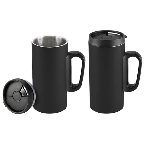 Mini-tazón para café modelo "Tritan" de Acero inoxidable doble pared aislante, cuerpo exterior color. Tapa de plástico PP negro con dosificador móvil.