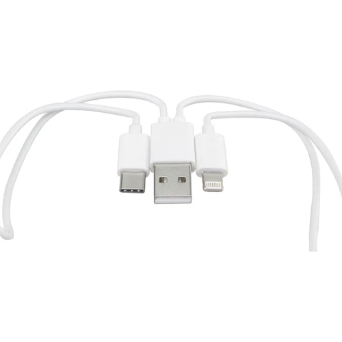 Connect Multicargador 4-en-1, en caja plástica redonda con tapa translúcida y soporte para celular, incluye terminal de carga USB y multicables Micro USB / i-phone / Type C. Incorpora nueva tecnología de cable cargador dual Micro USB y i-phone (en el mismo terminal). Compatible con dispositivos Android, Apple y Type C.