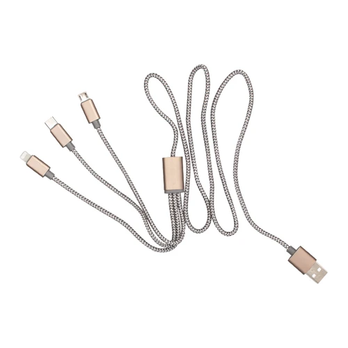 Deluxe Connect Multicargador 4-en-1 Metálico color Gris Titanio. Multi-cables con terminales de carga USB / Micro USB / Lightning / Type C. Compatible con dispositivos Android, Apple y Type C. Presentación en elegante bolsa OPP con orificio para colgador de ganchera. Producto con aprobación CE, ROHS, FC.
