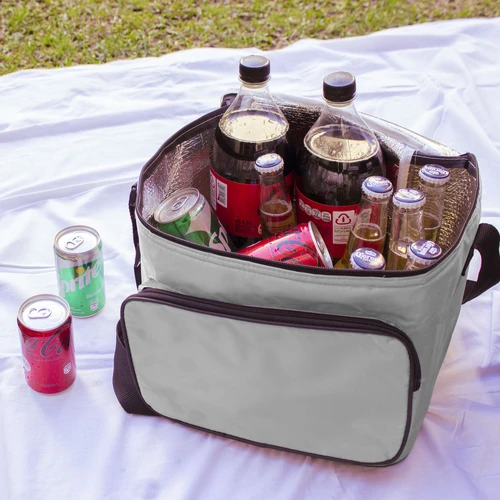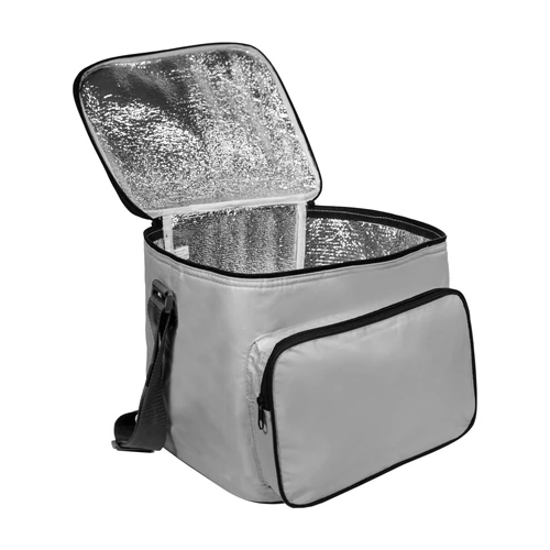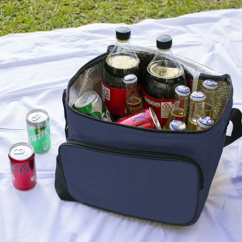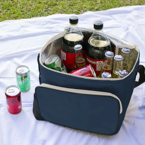 28 x 25 x 25 cm.. Capacidad 17,5 litros. Poliéster 420D. Interior recubierto de aluminio. Exterior con bolsillo y cierre que permite guardar pequeños objetos. Tira con regulador de tamaño para poderla transportar cómodamente.