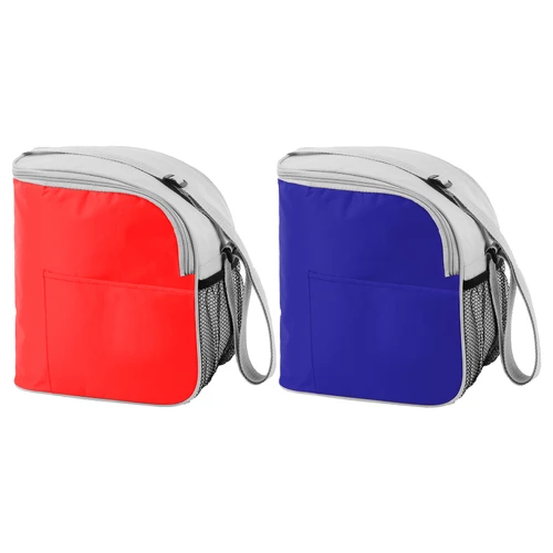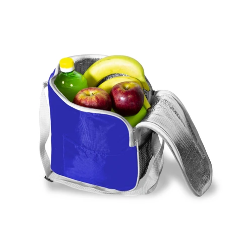 23 x 16 x 26 cm. Polyester 420D. Conservadora con cierre, 2 bolsillos exteriores. Interior con foil de aluminio. Correa regulable.