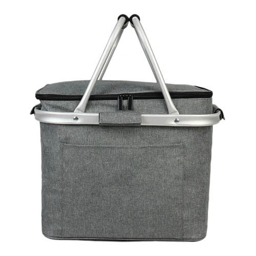 Bolso cooler grande de 23 litros de capacidad, en tela poliéster 300D/PVC. Montado sobre estructura de aluminio con asas plegables. Interior térmico aislante de PEVA y acolchado con esponja PE FOAM.
